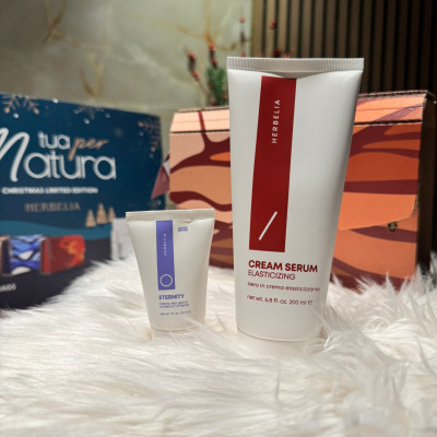 EQUILIBRIABAGThe Equilibria Bag delivers nourishment and tone through a powerful face-and-body duo. The Cream Serum Tonic revitalizes, firms and refreshes the body with a silky texture, while Eternity provides daily anti-age benefits, smoothing and illuminating the face. Together, they restore balance, hydration and energy for a grounded beauty ritual.